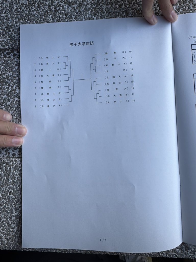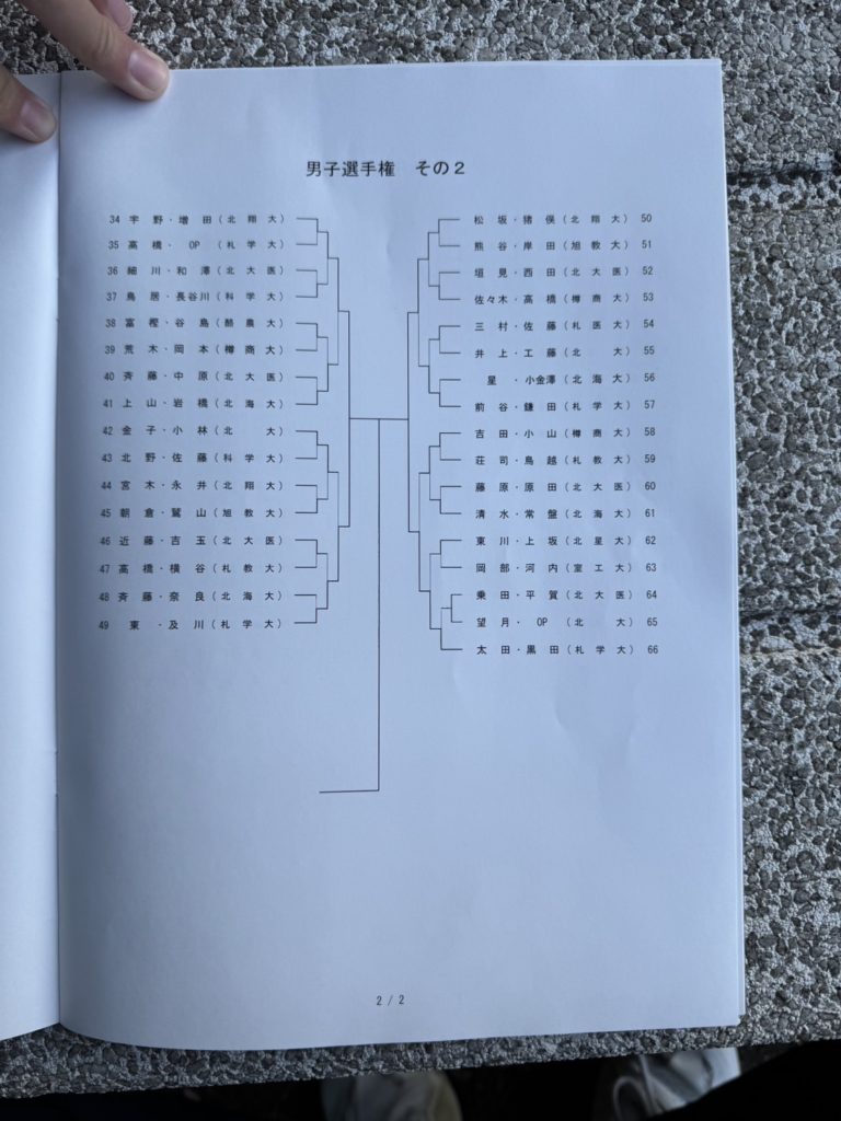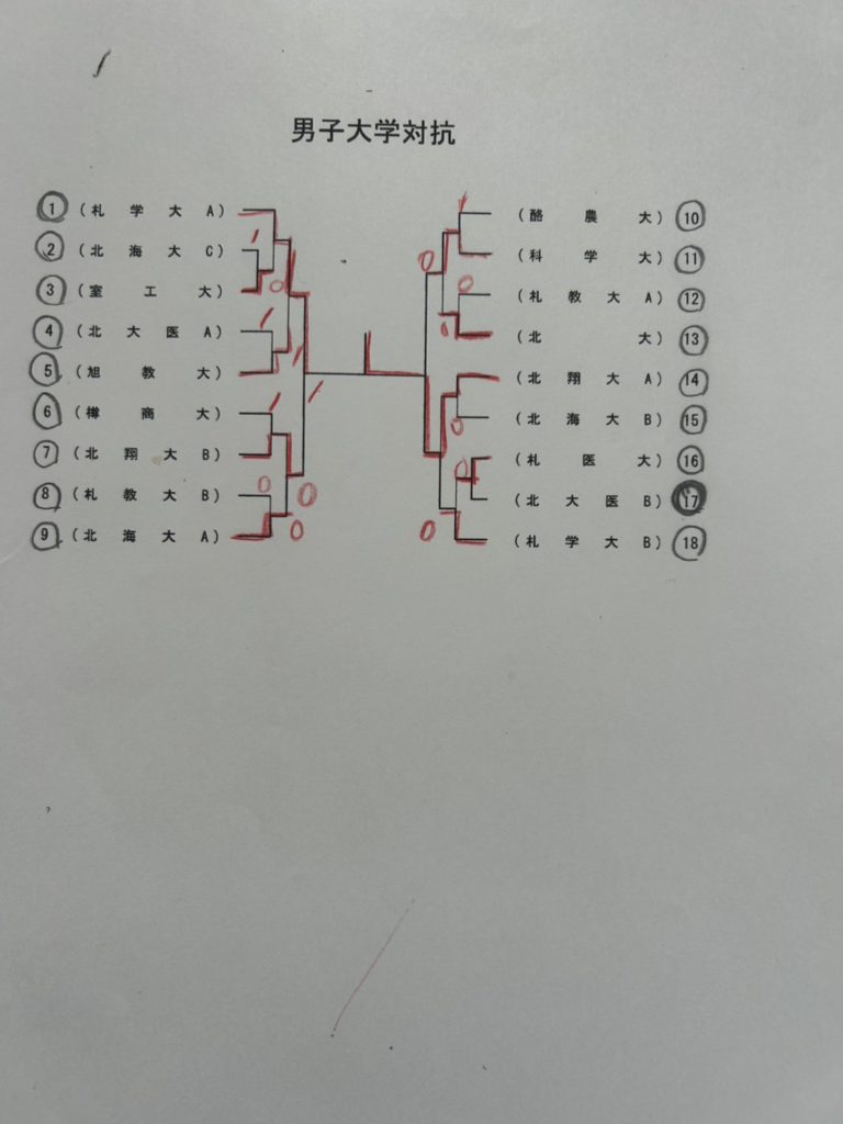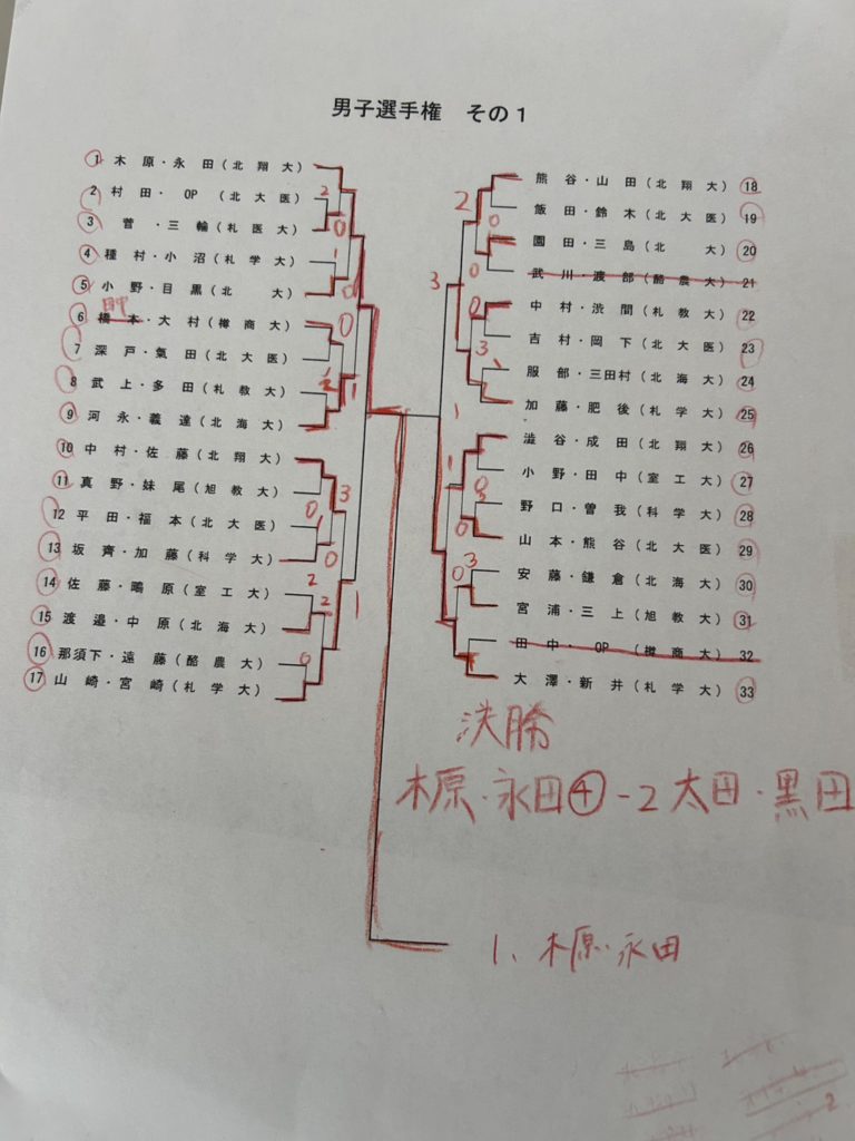 しかし3回戦(旭川教育大学)時にオーダー誤記入で3番目が棄権となり、1番2番での勝利しかありませんでした。